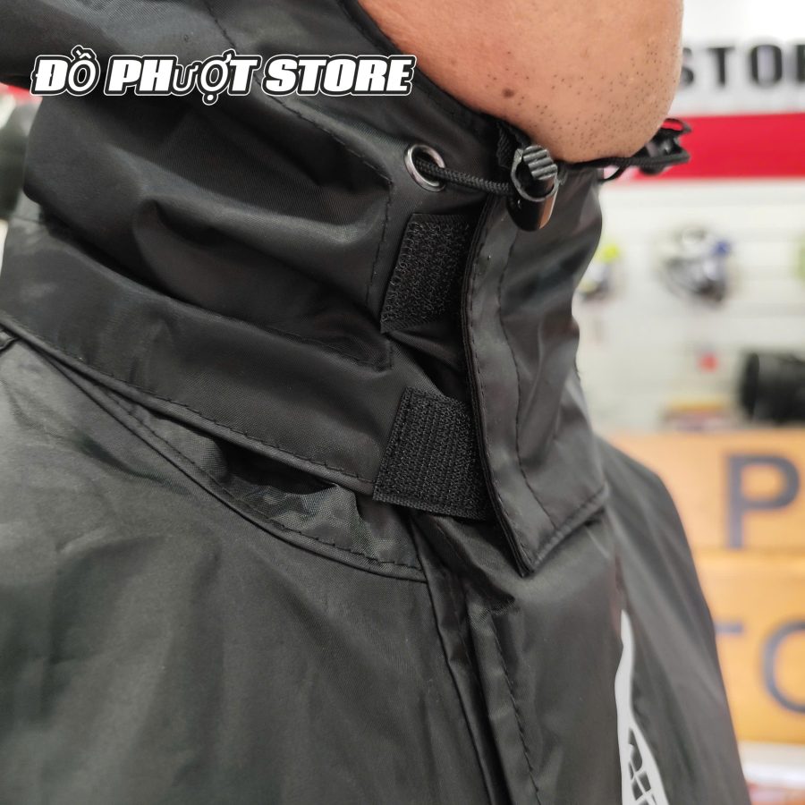 Khi đội nón Fullface / 3/4: Cổ áo RRS06 được thiết kế kéo cao, ôm sát, ngăn nước lọt vào cổ 100%. Phần mũ (nón) có thể được giấu gọn gàng, không gây cộm, vướng víu khi chạy xe.